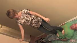 Nov 1 - Mistress Kylie is trampling her sub in a narrow hallway which is convenient as she can keep her balance more easily. A lot of jumping and as usual you can tell she is having fun.