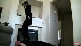 Jun 14 - Video clip: Sammie is making coffee and completely ignoring ladiesfloor who is squirming under her feet as her stiletto heels are digging deep into his flesh. She casually walks back and forth all over his stomach and chest and stomach until her coffee is ready.