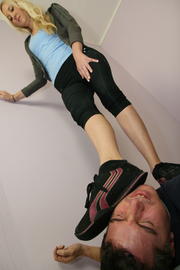 Mar 15 - Goddess has strong beautiful legs and excellent balance as she tramples her submissive. She stands on his head and stomps on his worthless body