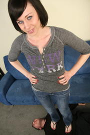 Mar 24 - Elle is feeding her feet to the face in her floor. She has her toes painted black and is using her sexy long legs to tease him.